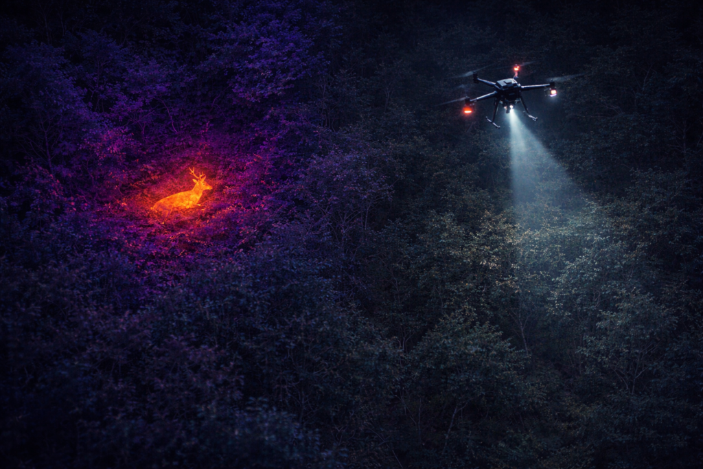 When a deer is wounded or goes down after dark, time is critical. Using advanced thermal drone technology, we conduct efficient aerial searches to help locate harvested or wounded deer quickly—reducing meat loss, minimizing suffering, and avoiding lengthy ground searches in difficult terrain.